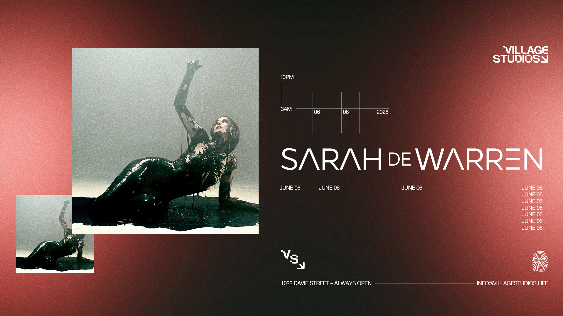 The iconic voice behind Eli Brown’s ‘Be The One’, techno/trance artist and DJ Sarah De Warren is widely recognized for her contribution to rave culture. See Sarah De Warren in Vancouver Saturday, June 6, 2026 at Village Studios.